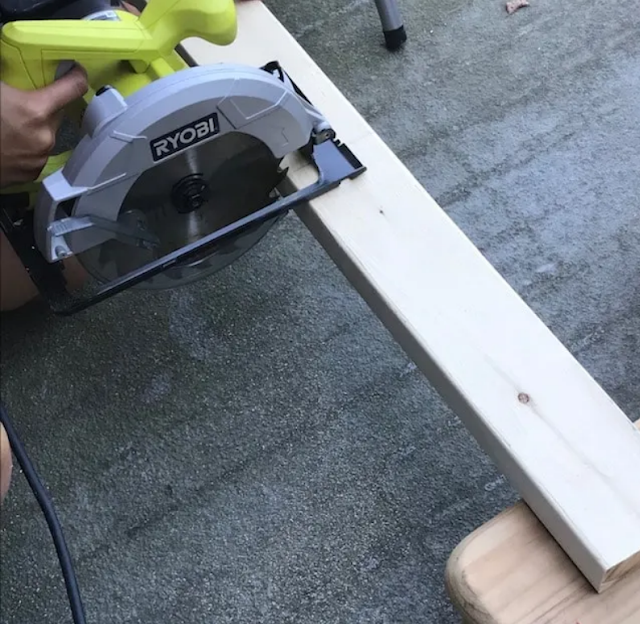 Using your circular saw, cut 4 pieces from the 2″ x 4″ x 8″ wood. These will be used as